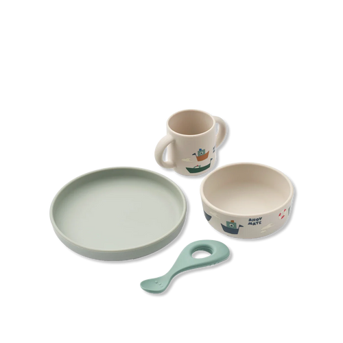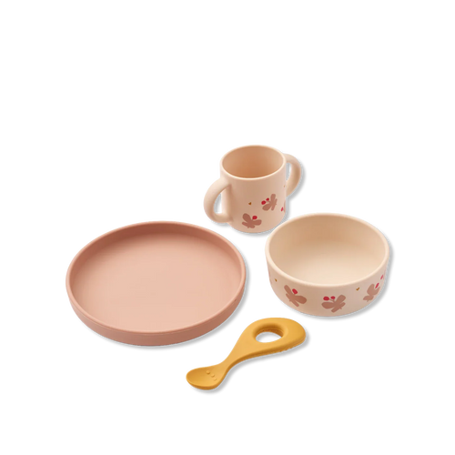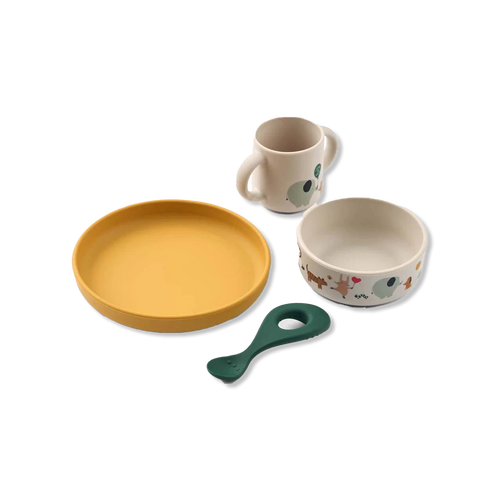 This popular LIEWOOD dinner set includes a cup, bowl, plate and spoon - perfect for babies and small children. Made of durable and shatterproof silicone and is ideal for everyday use.